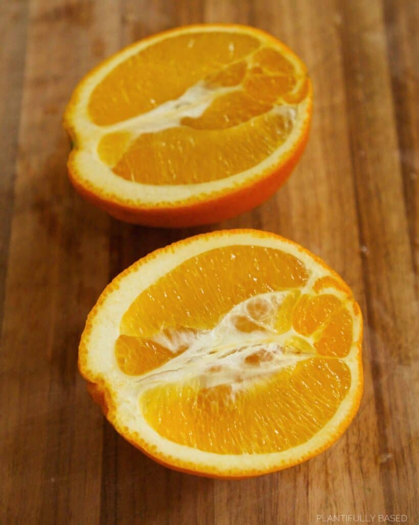 - Slice the orange in half.