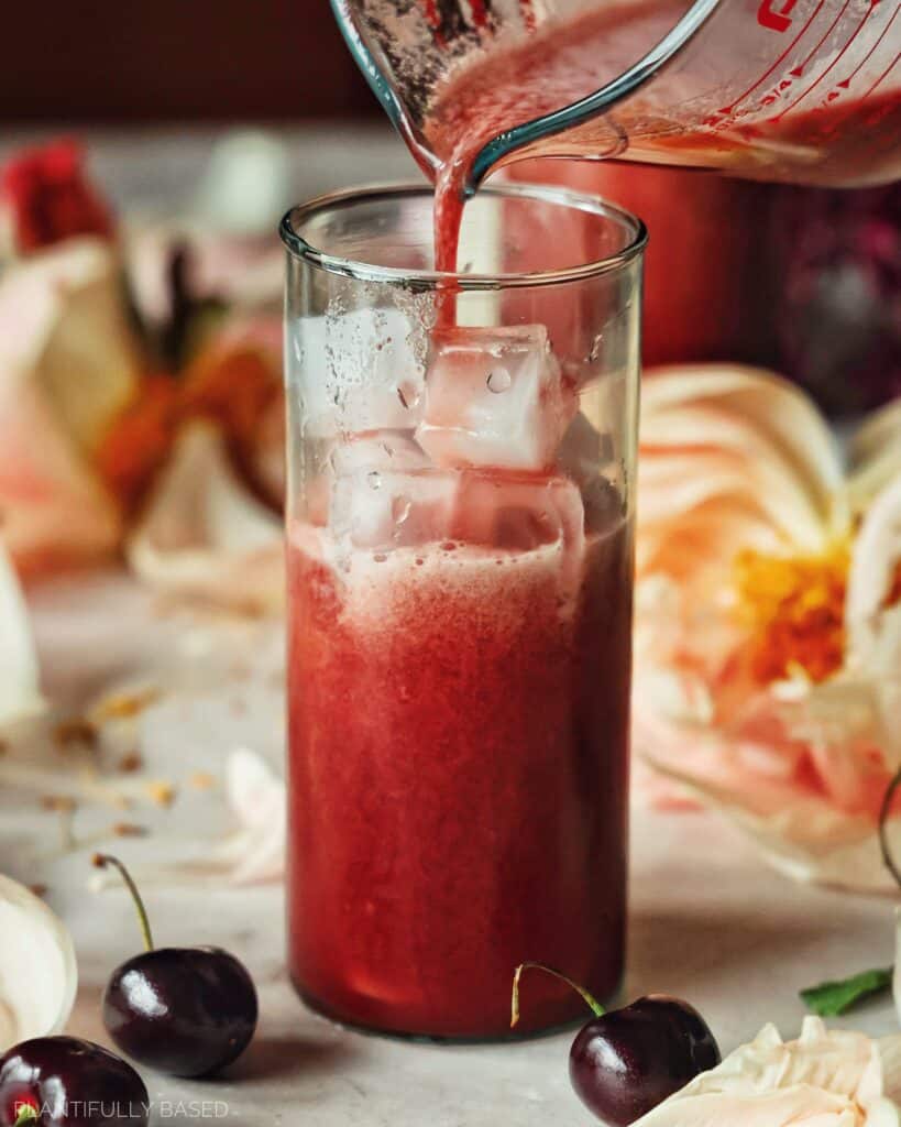 Once the drink is all blended up it will be time to strain. However, if you don’t mind there being texture you can skip straining it if you like as well.