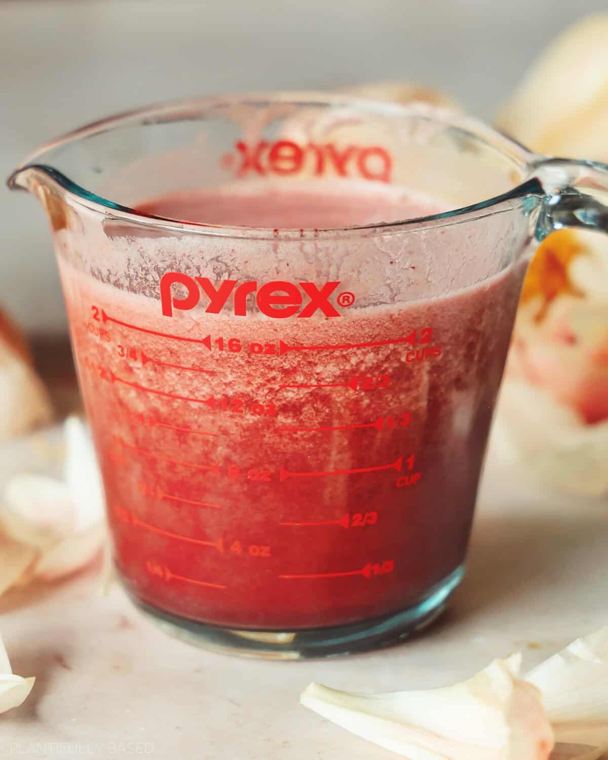 - Use a sieve to strain the liquid into a measuring cup or small pitcher.