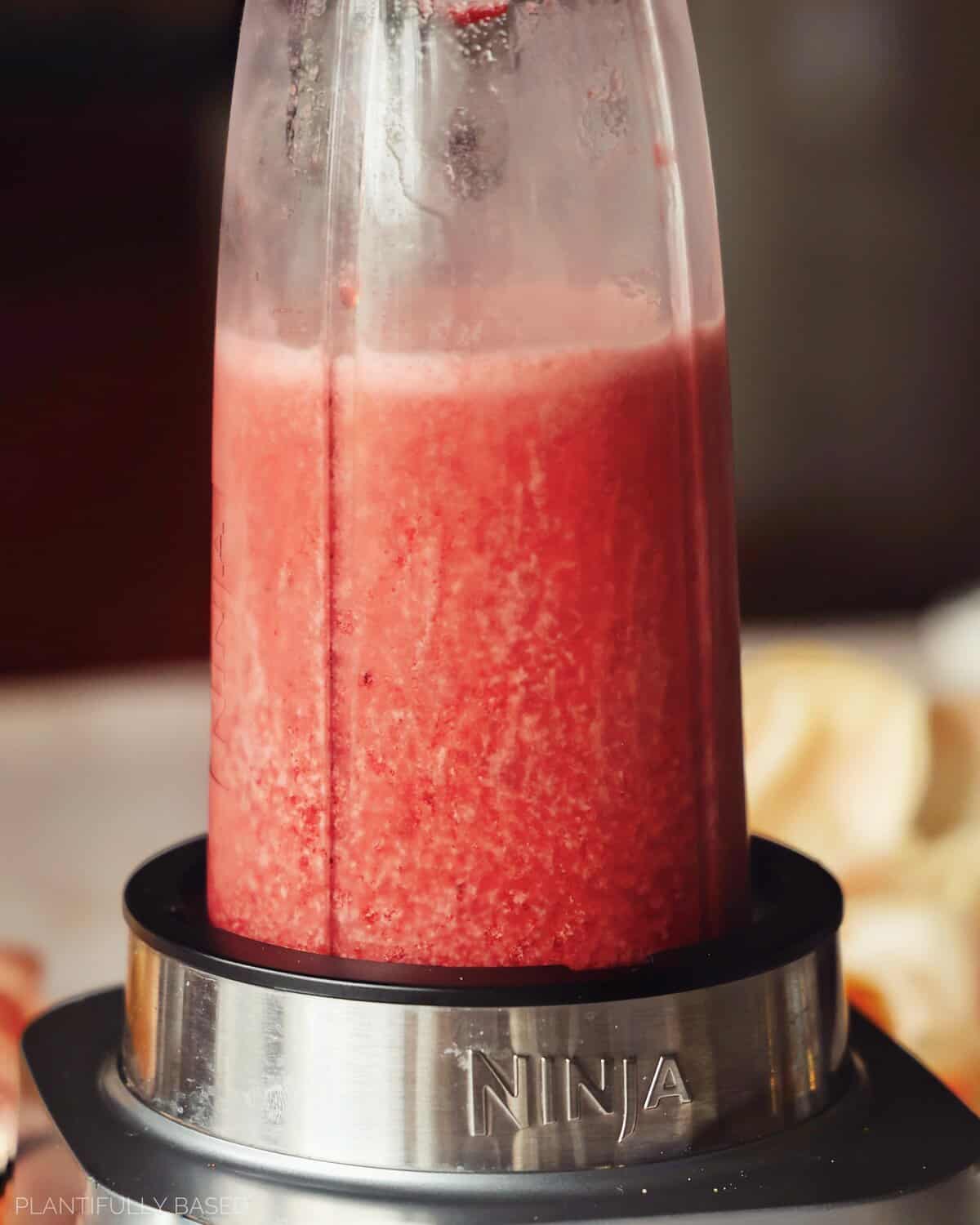 Then, blend the drink for a minute until everything is broken down. I personally like to use a high speed blender to ensure it can handle the ingredients.