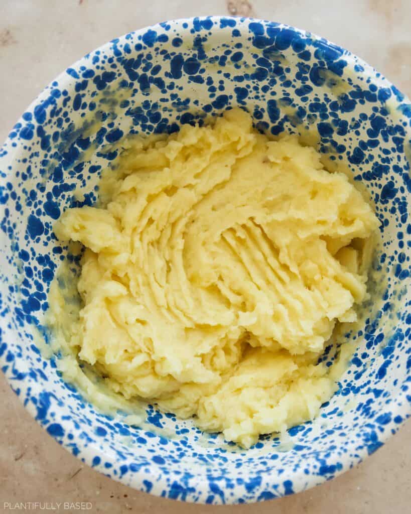 - Mash the potatoes with a back of a fork. You can also use a potato ricer or fine mesh sieve to really make the potatoes smooth. I personally was okay with there being a few lumps.