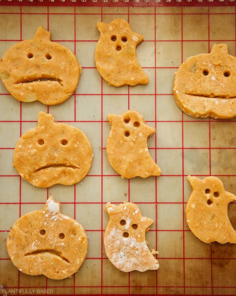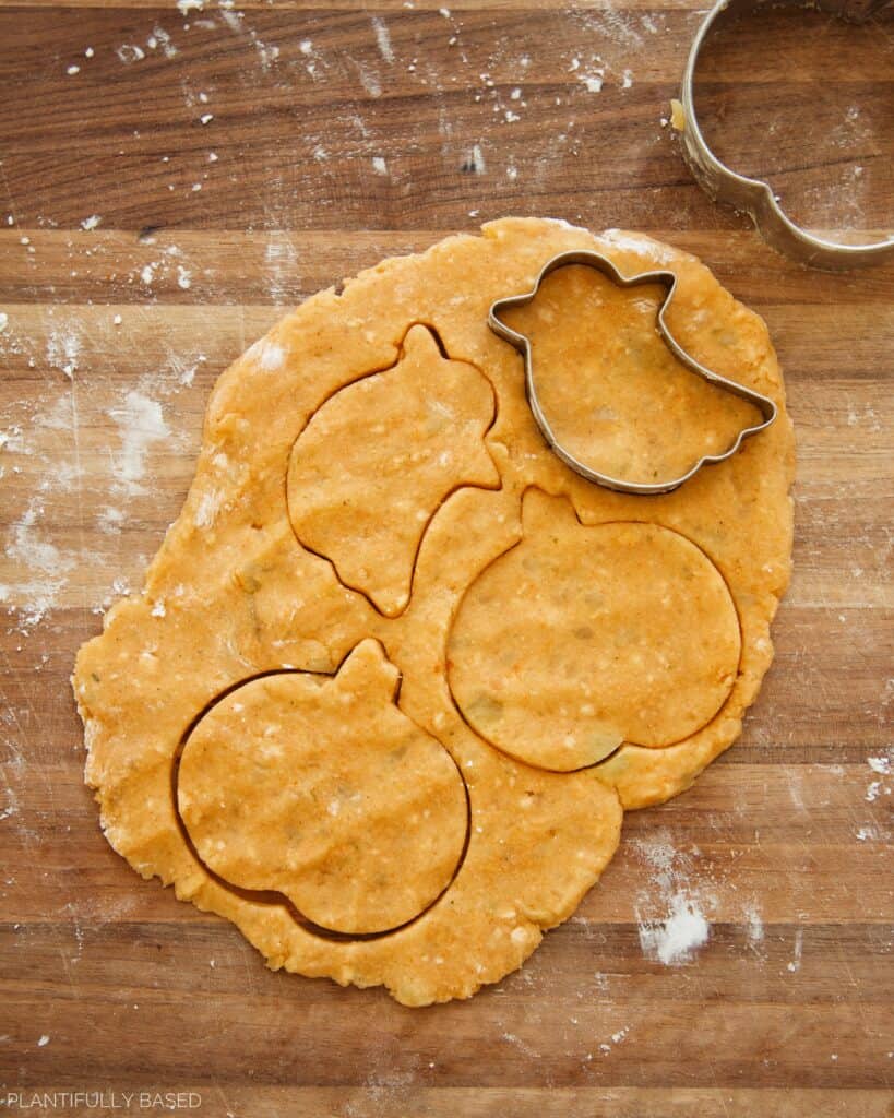- Then use a cookie cutter to cut out fun shapes. Transfer to a lined baking sheet. You can use a spatula or knife to help you lift the shapes if needed.