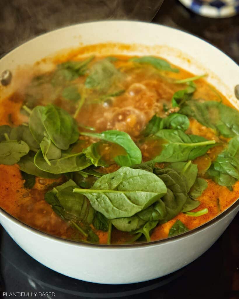 - Spinach: to add some nutrients and greens to the soup. You can use chopped kale if you like too.