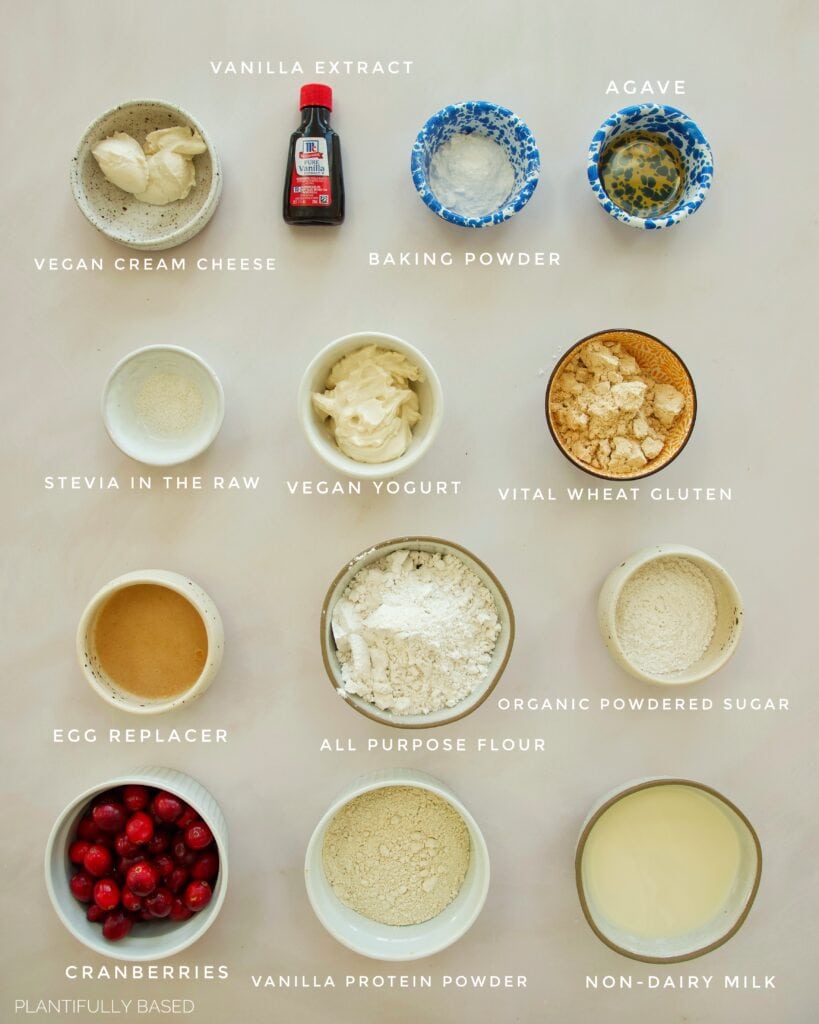 A big question I always get asked is “but how does a recipe have this much protein?” So, I am here to answer it for you! The main sources of protein here are the protein powder, vital wheat gluten, high protein non-dairy milk, and high protein vegan yogurt.