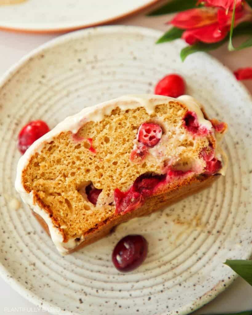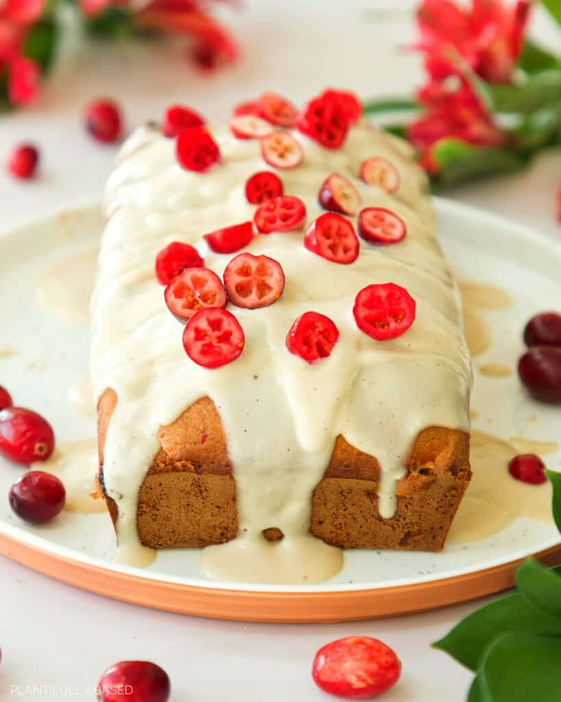 - Pour frosting over top and decorate with extra fresh cranberries if desired, enjoy.