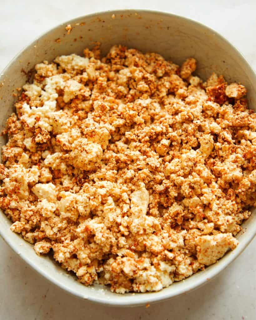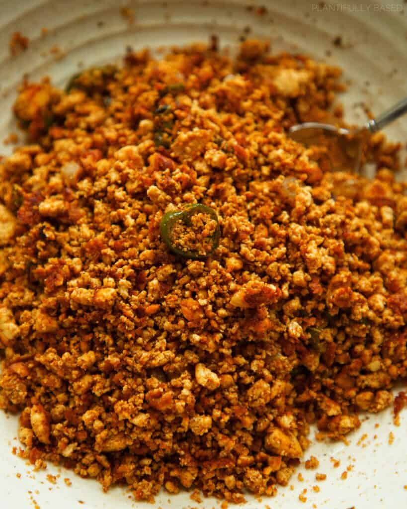 Finally, you can play around with the size of the tofu crumbles which will change the texture when the tofu taco meat it is in something. You can make the crumbles very small or very big, play around with it.