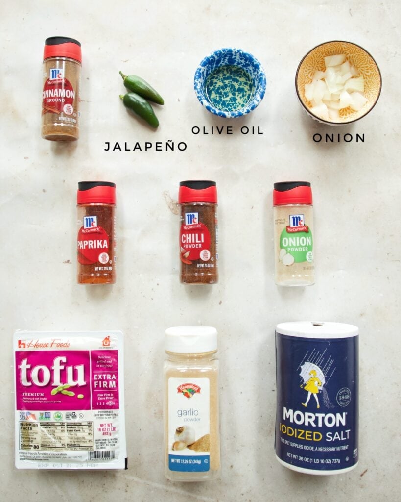 - Tofu: you will need a block of tofu for this recipe. You can use extra firm, super firm, or even a soy free tofu. I wouldn’t do any less firm than an extra firm.