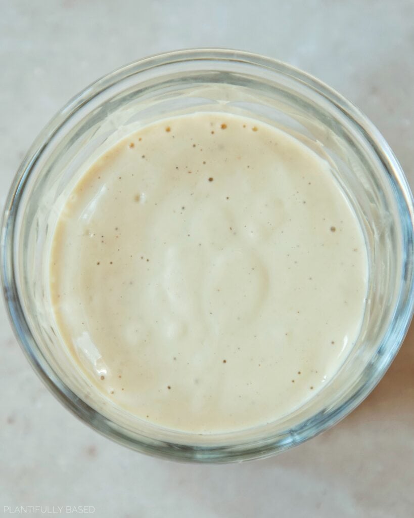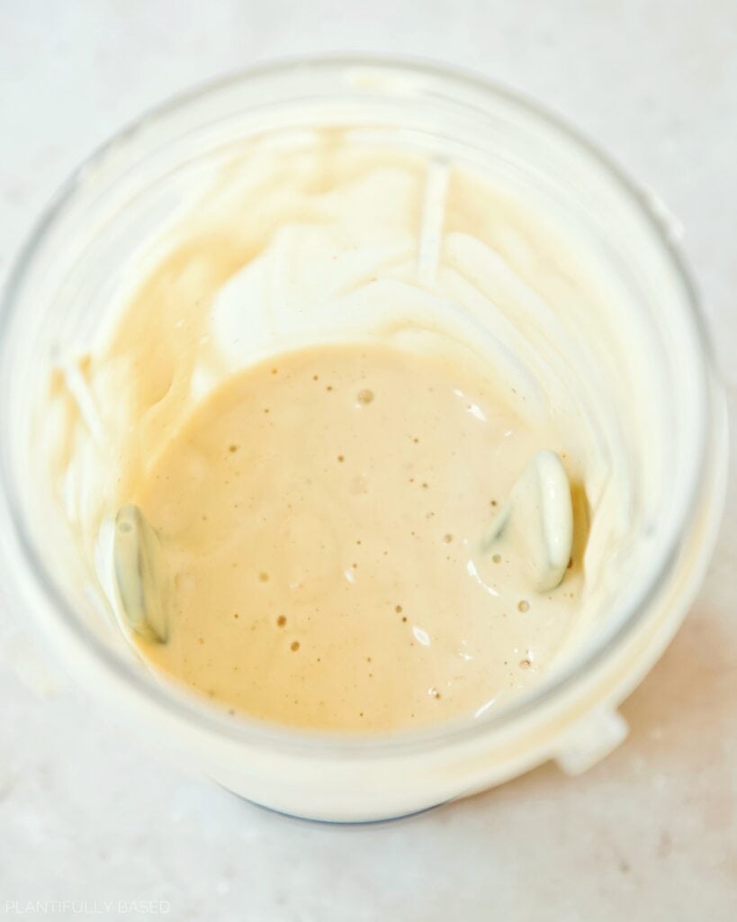 - Finally, blend the tofu, vegan yogurt, powder, and nutritional yeast until smooth.