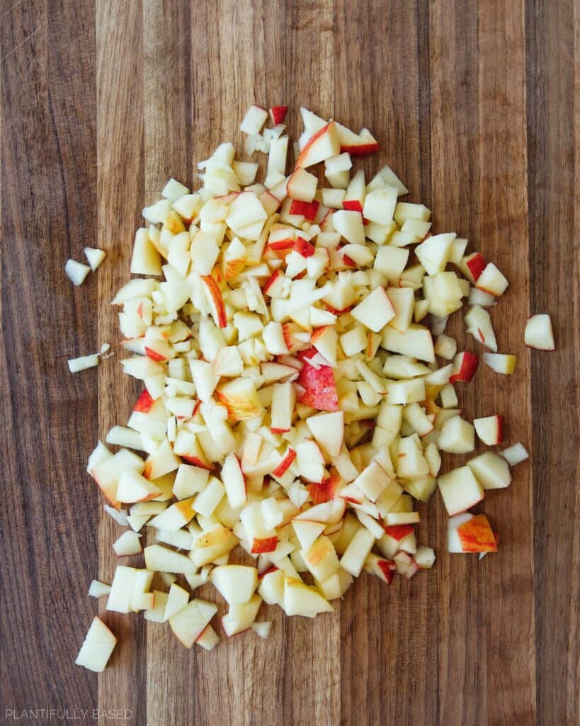 - Finely chop one apple of your choice (I used Honeycrisp). Peeling is optional. I like to keep the skin on.