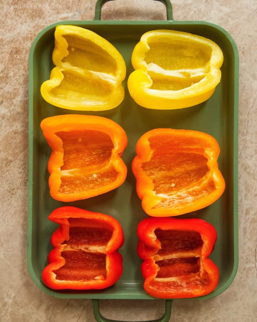 - Bell Pepper: of course for vegan stuffed peppers we will need bell peppers! I like to use a variety of colors like red, orange, and yellow as they are the sweetest. You can of course green if you like.
