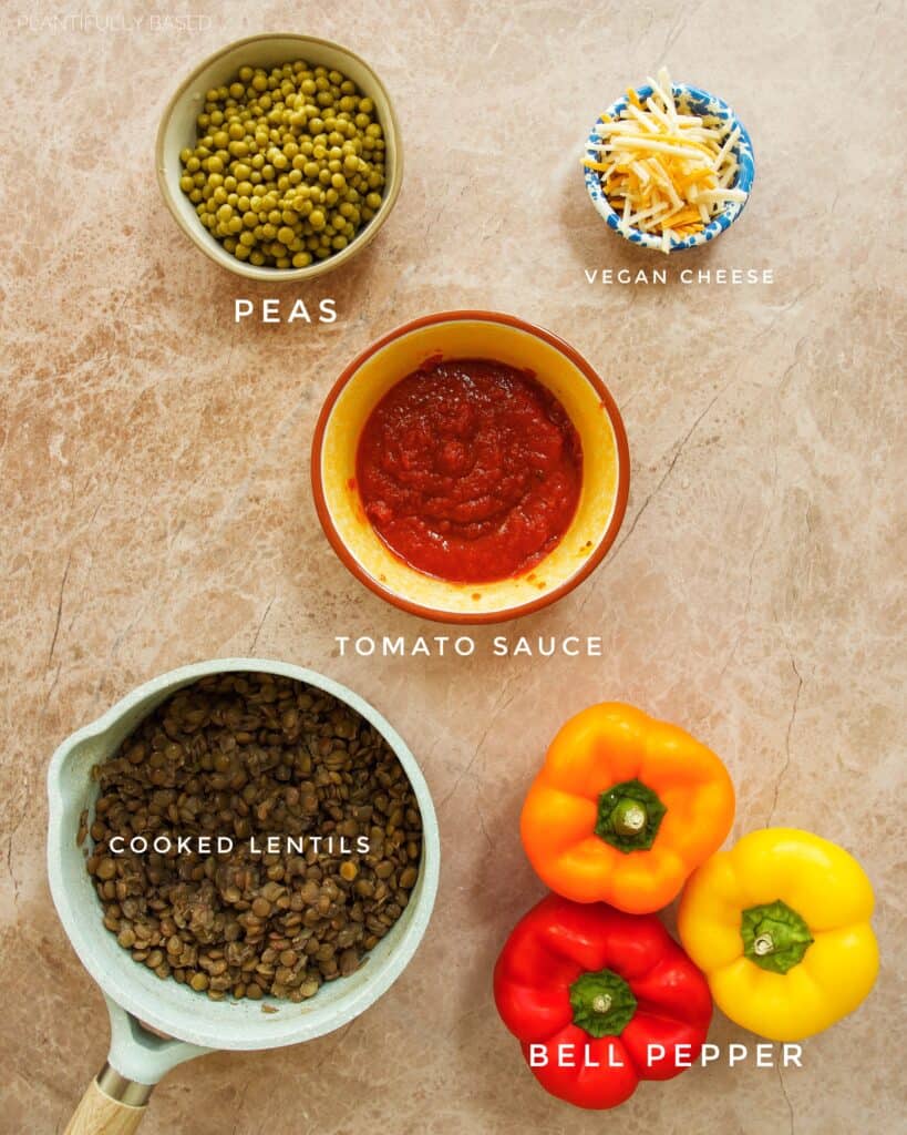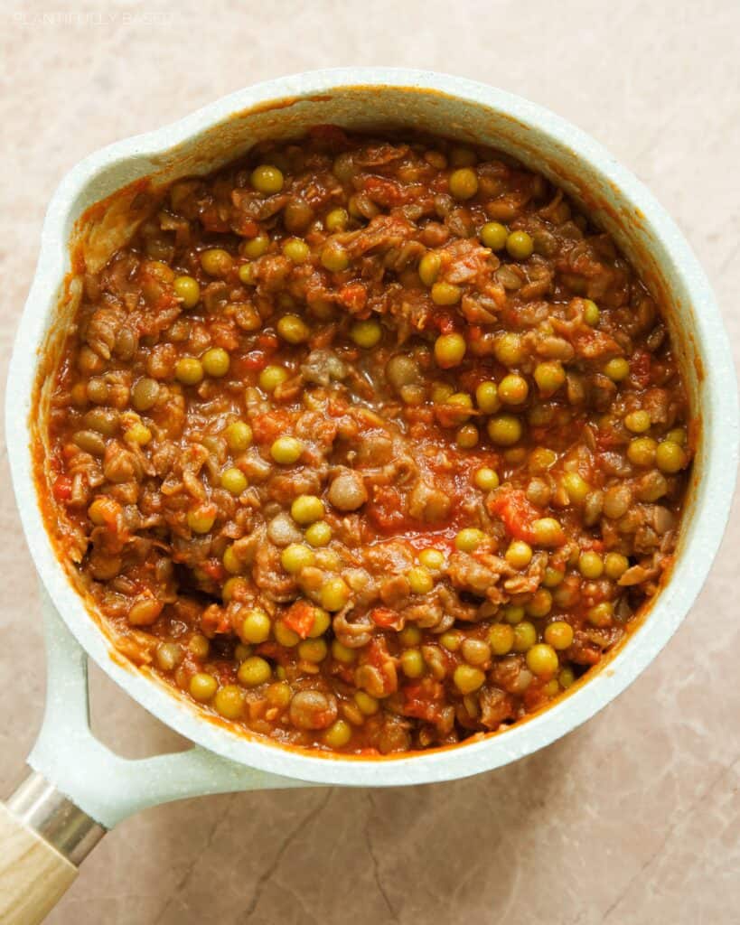 You can really add in anything you like! Quinoa, rice, barley, or couscous for some more carbs. You can add in more vegetables like chopped zucchini, tomatoes, cauliflower, garlic, corn, mushrooms, carrots, or whatever else you like. You can play around with spices and seasonings. You can add in more beans like black beans, cannellini beans, kidney beans, or chickpeas. These are truly a very easy recipe to customize. However, if you do add in more things to the filling cut down the amount of lentils you use. You can also up the protein with cubed tofu or seitan pieces.