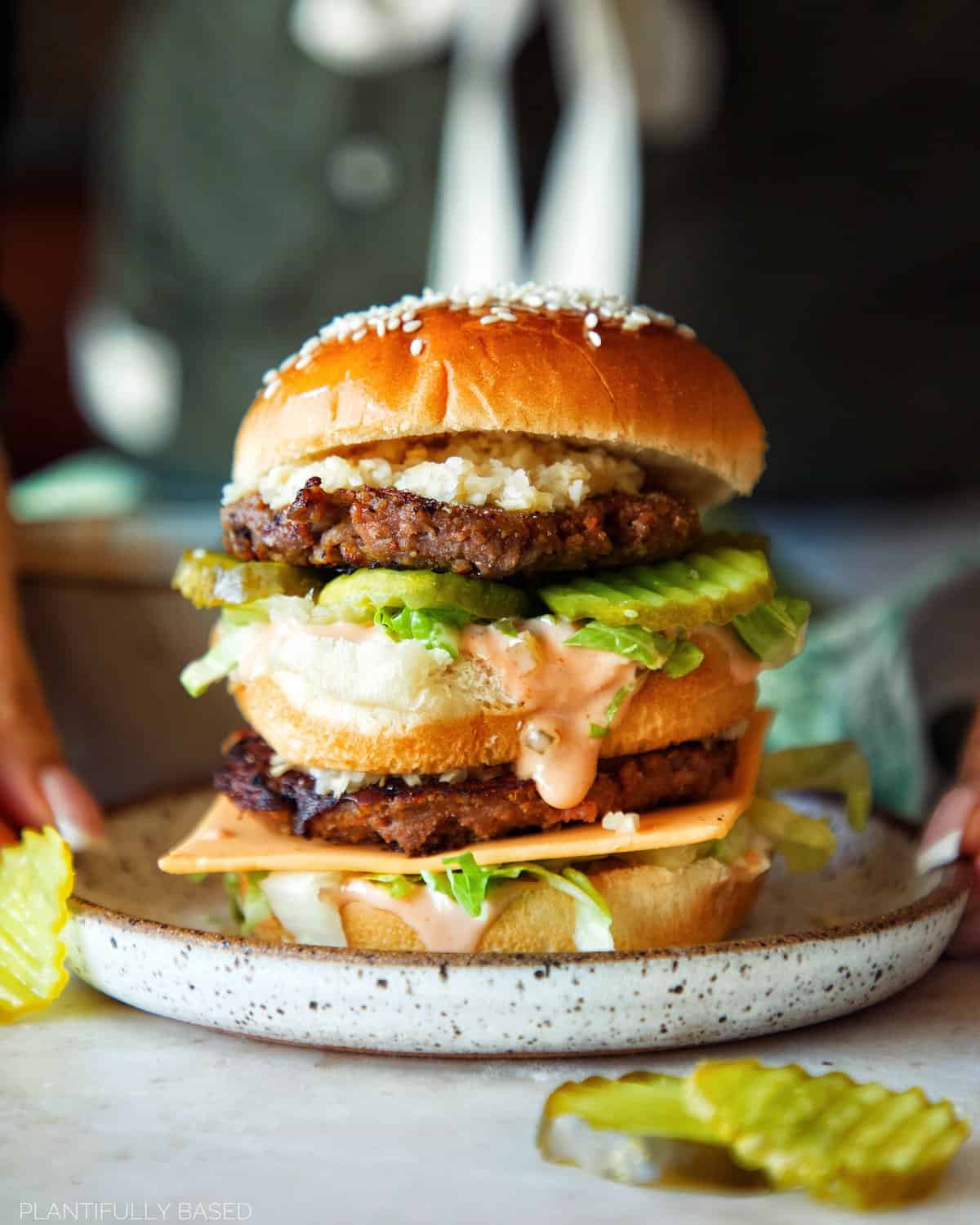 Love making this delicious vegan Big Mac – best special sauce and layering 👌🏼