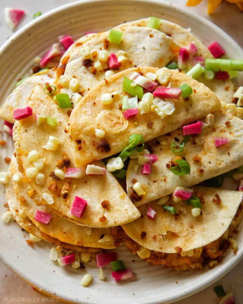 These are best fresh and hot out of the pan! They can be enjoyed with vegan sour cream, vegan yogurt, a squeeze of lime juice, or some salsa. If you like it you can also feel free to top with cilantro or pieces of avocado.