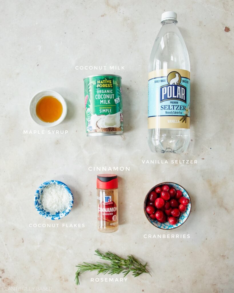 - Vanilla Seltzer: I like to add seltzer to add fizz. It also helps to thin out the coconut milk a bit. Vanilla seltzer is very delicious and adds in nice flavor. However, you can use any seltzer flavor you enjoy.