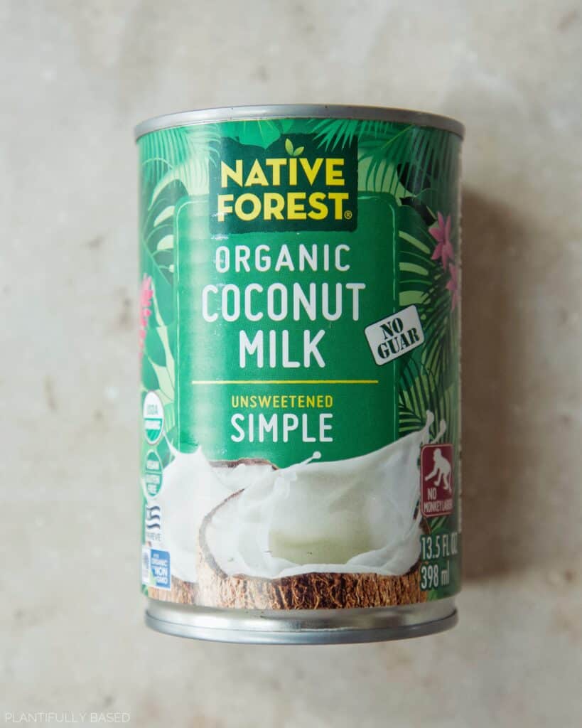 - Canned Coconut Milk: for this recipe you need canned coconut milk. You can either use full fat or light coconut milk, either way will work. Just please make sure it is canned.