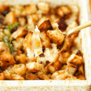 Then, add in the cooked leeks, shallots, herbs, and craisins.