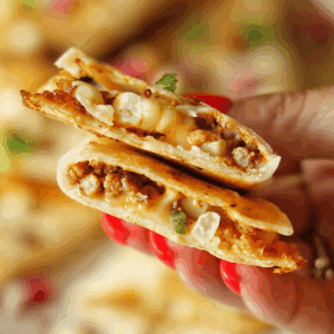 Then, fold the tacos over in half. Warm up about ¾ of a tablespoon (12ml) of the oil in a large pan over medium heat. Then, place a few tacos in there. I did 4 tacos at a time. Cook for 3 to 5 minutes until the tortilla turns golden. Then, flip and cook on the other side for a few minutes.