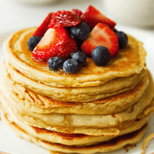 The recipe will make 6 regular size pancakes. A serving is 2 pancakes.