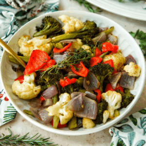 This holiday roasted vegetable medley is an easy holiday side dish that will pair well with any main course.