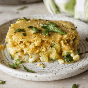 Prepare the cornbread batter: Make the cornbread batter: Add the apple cider vinegar to the nondairy milk to make vegan buttermilk. Mix together and set aside for 5 minutes to curdle. In a large separate bowl add the cornmeal, all purpose flour, baking powder, organic sugar, and salt. Whisk together until well incorporated. Then add in the vegan buttermilk, egg replacer, and oil. Whisk together until a batter is formed. If the batter feels too thick you can add in 1 to 2 tablespoons (15 to 30ml) more of water.